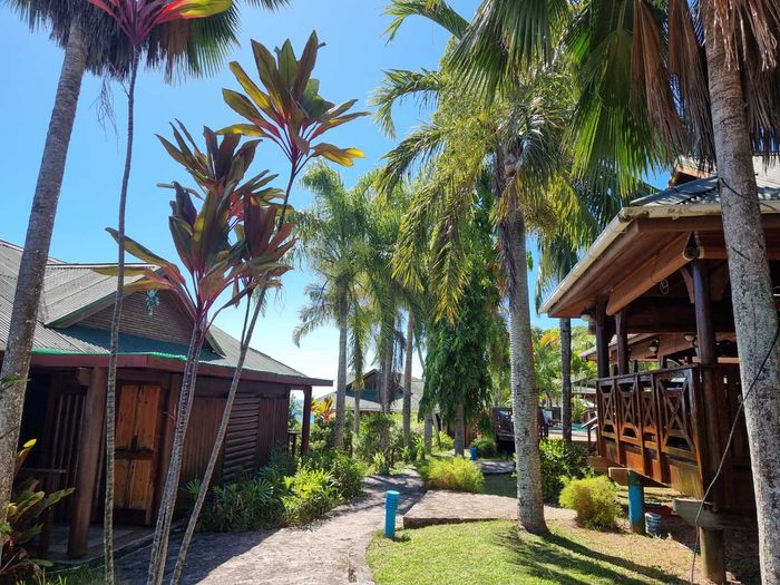 Island living on Mahe's southwest coast — a boutique resort in lush tropical gardens with terraces overlooking azure waters, 10 two‑bedroom suites, 20 bedrooms and 20 bathrooms, pool and restaurant.