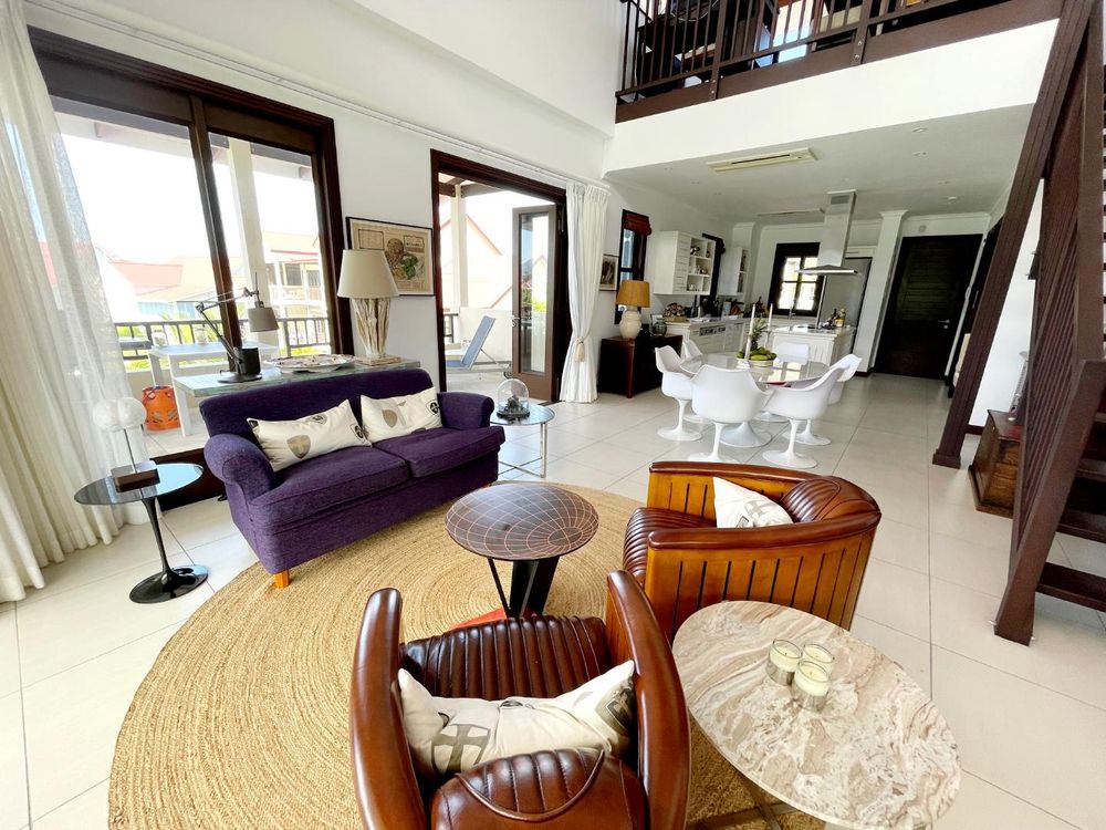 Light and bright! Exceptional loft apartment in prime Basin 6 location. Offering 2 spacious en-suite bedrooms downstairs, one with private balcony, and a sumptuous master suite and family room, on the upper loft level. Lobby, guest WC, contemporary kitchen, dining room and lounge leading out onto a large, wrap around terrace on the main level. The unit is lke new, tastefully decorated, finished in white, air conditioned throughout, comes fully furnished and equipped, with EPV, private mooring and parking.