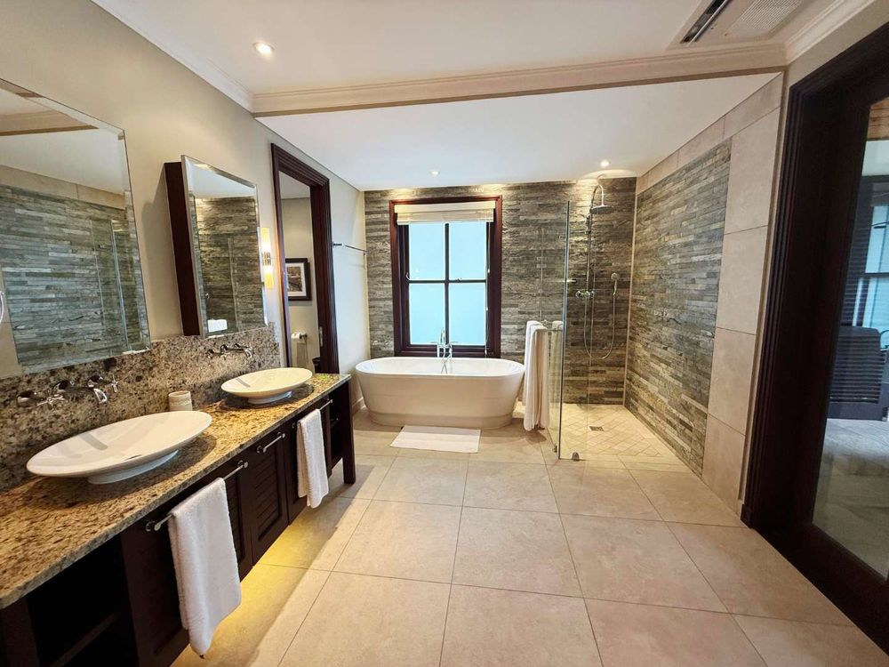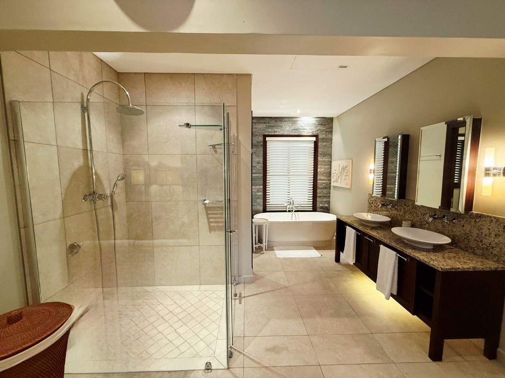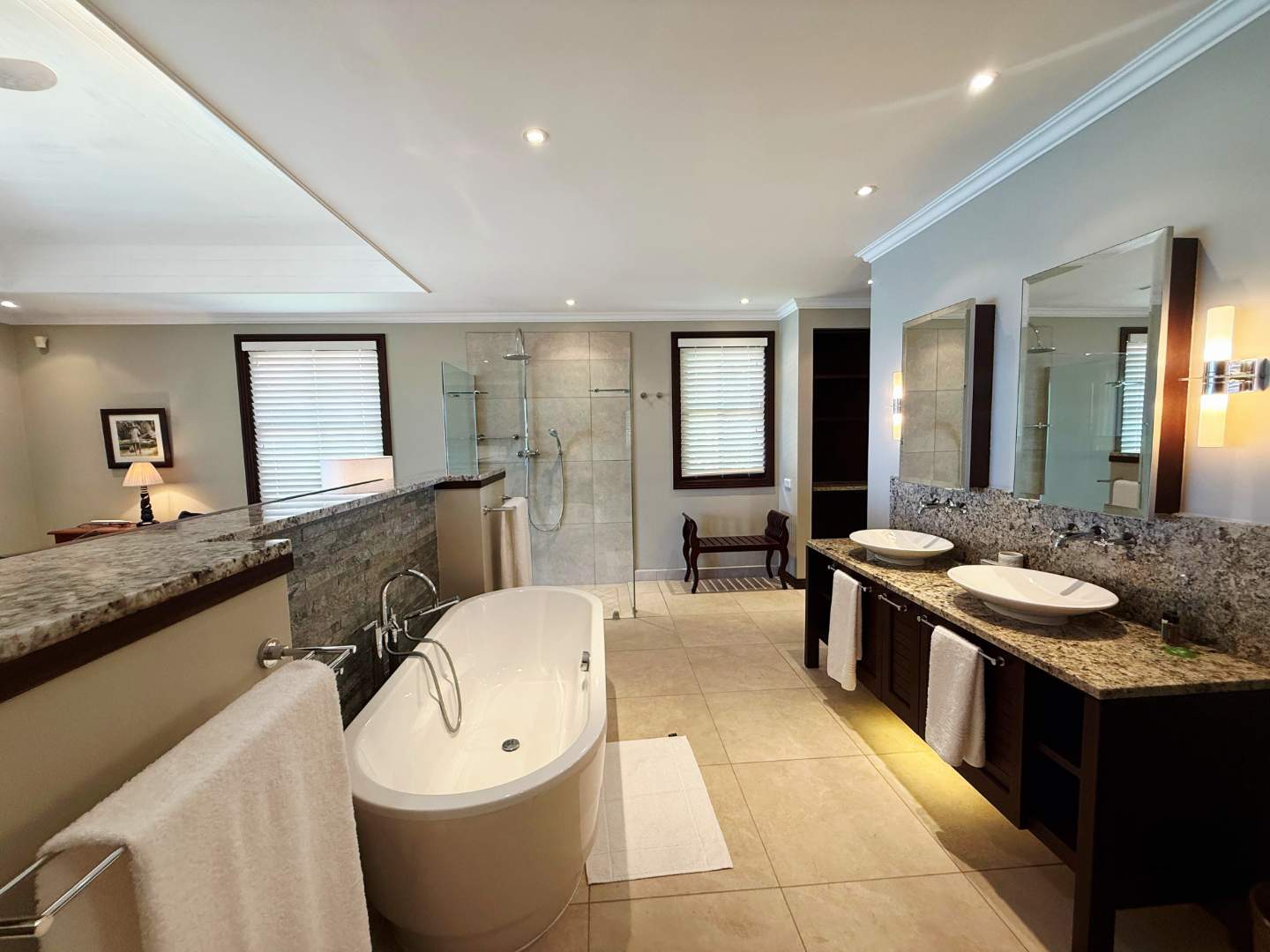 Set on two spacious levels, with a sumptuous flow, offering six master bedrooms all en-suite, three downstairs and three up, open plan living, dining and incredible entertainment areas. Fully equipped kitchen with miele appliances, laundry and scullery. Lush, tropical gardens with large private swimming pool and exceptional ocean and island views.