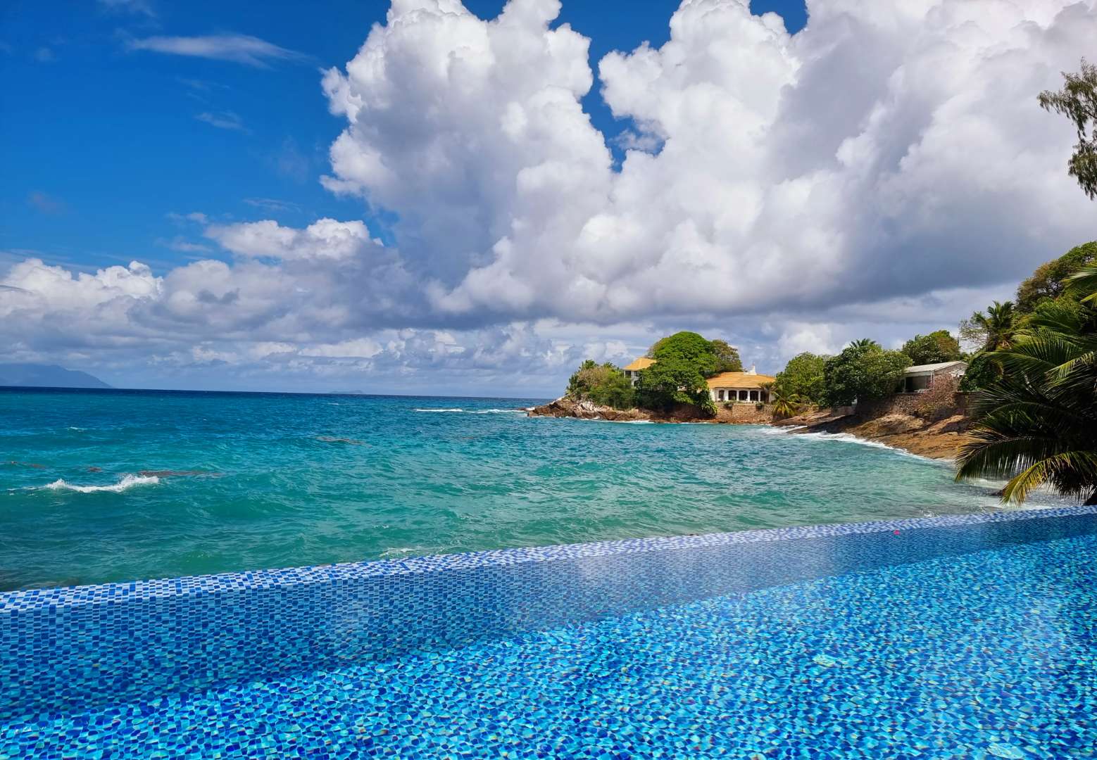 High yield, all luxury villa resort for sale, right on the waters edge in prime oceanside location in the North West of Mahé. Offering 17 multi level luxury villas, each with 4 bedrooms, 3 bathrooms, contemporary kitchen, spacious living and outside space, all with incredible sea and island views set in lush tropical gardens. Shared amenities include large swimming pool, full service Spa, immaculately kept gardens, catering and BBQ facilities. Villa daily rates from US$540 with high year round occupancy.