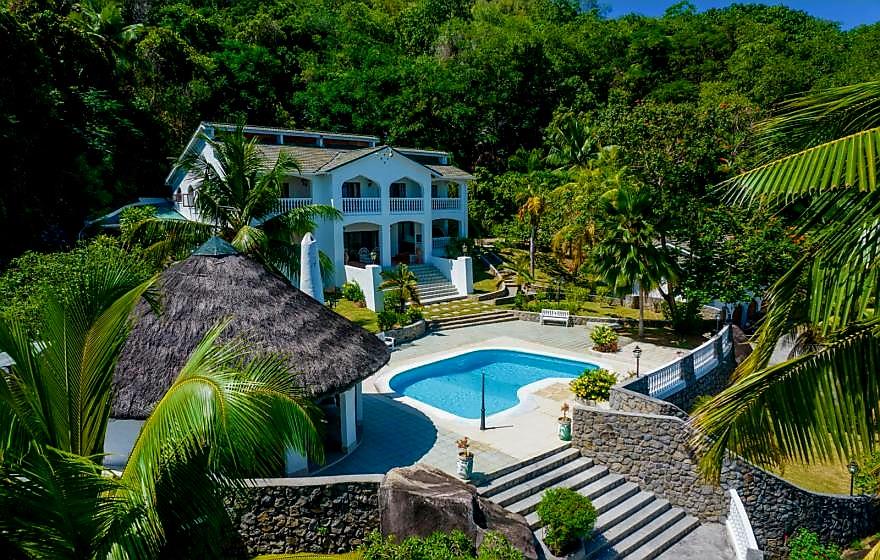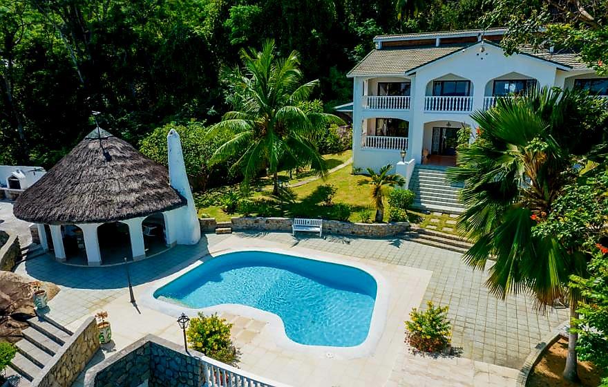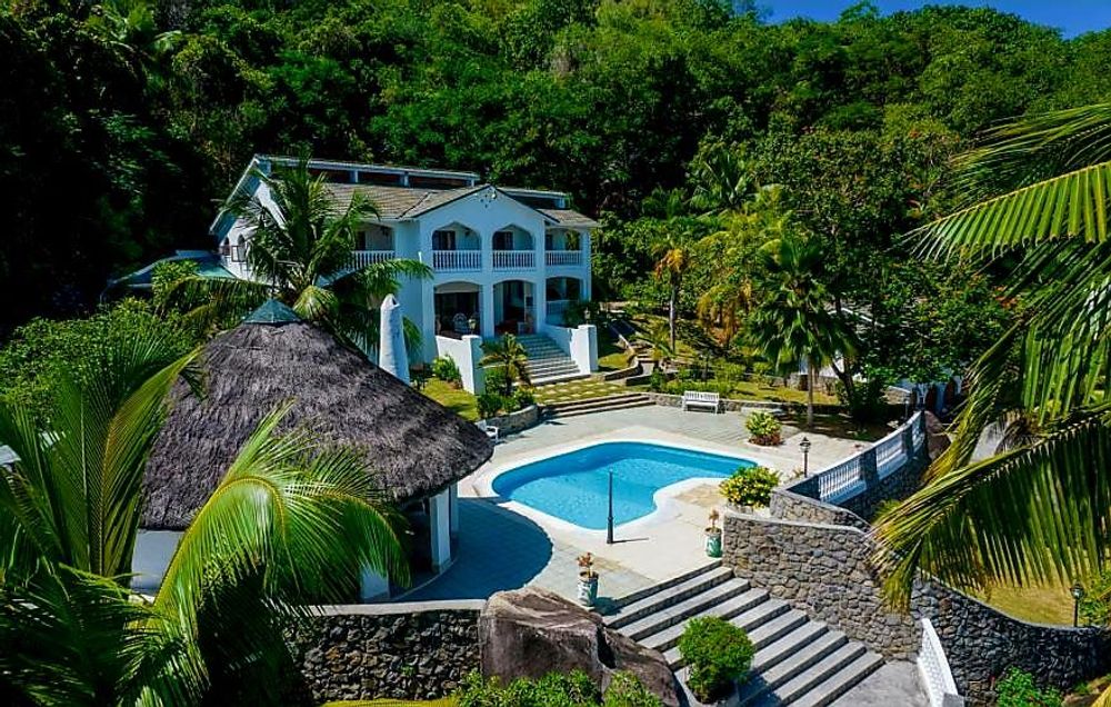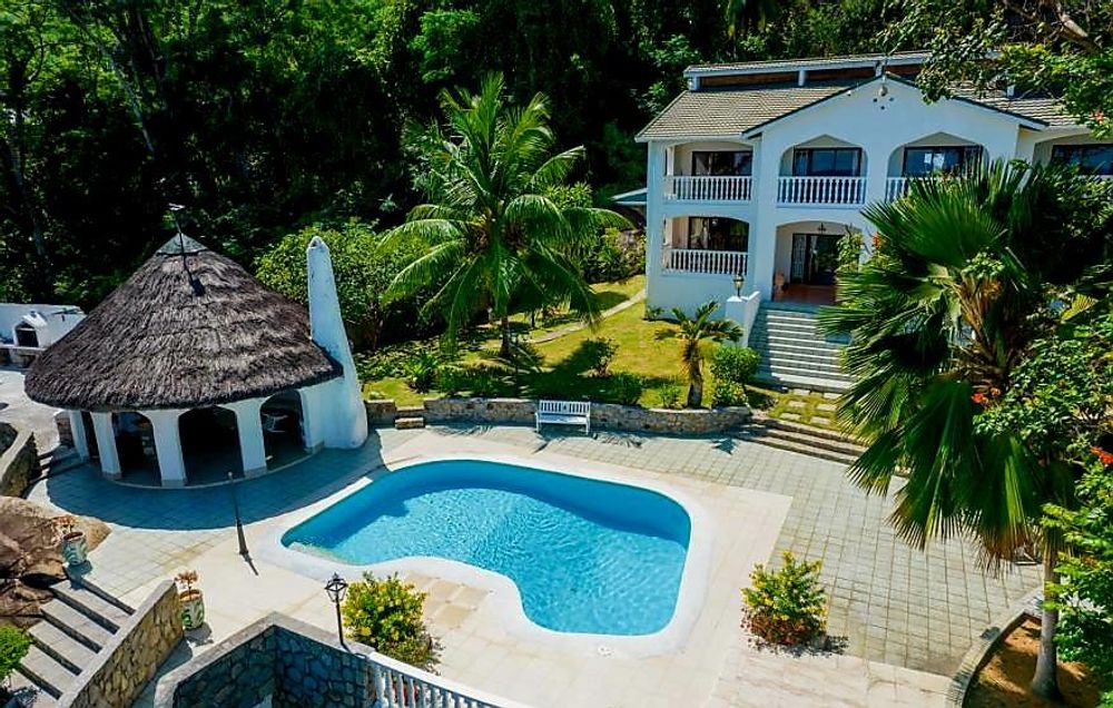 Grand property in highly sought after Machabee, North Mahe. Well maintained, older villa, set on 2 levels in lush, unspoilt tropical grounds, totalling nearly a full hectare. A rare find in the part of the island. Offering 4 bedrooms (2 en-suite) and 3 bathrooms in total, spacious living areas and incredible, unobstructed sea views. Separate guest/staff accommodation, large swimming pool and outdoor entertainment area.