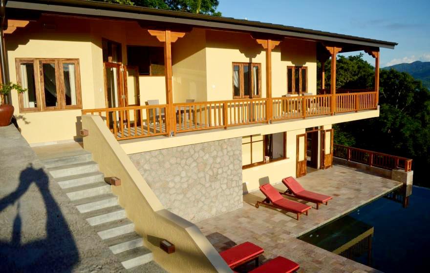 Exceptional small scale tourism opportunity and private residence. Located in the South West of Mahe, with incredible views over Baie Anse La Mouche. The property consists of 2 main buildings. The main house offers 4 bedrooms and 2 bathrooms with a large front terrace and built to European specifications and standards. The second building offers to separate apartments with private access, one above one another. The lower apartment offers one large bedroom with direct pool terrace access. The upper apartment offers 2 bedrooms and 2 bathrooms and has a private terrace. Large infinity pool overlooking the bay and separate bed sitter and laundry complete this remarkable property. Conveniently located with easy access to Anse Soleil, the Four Seasons and Kempinski Seychelles Resorts.