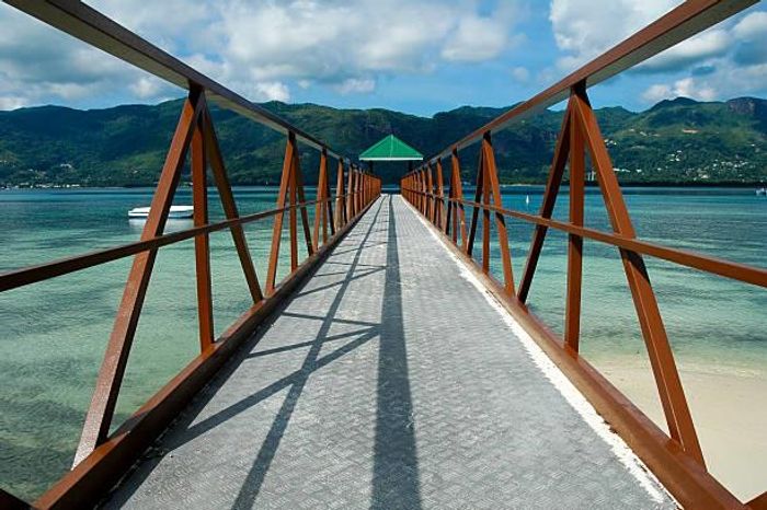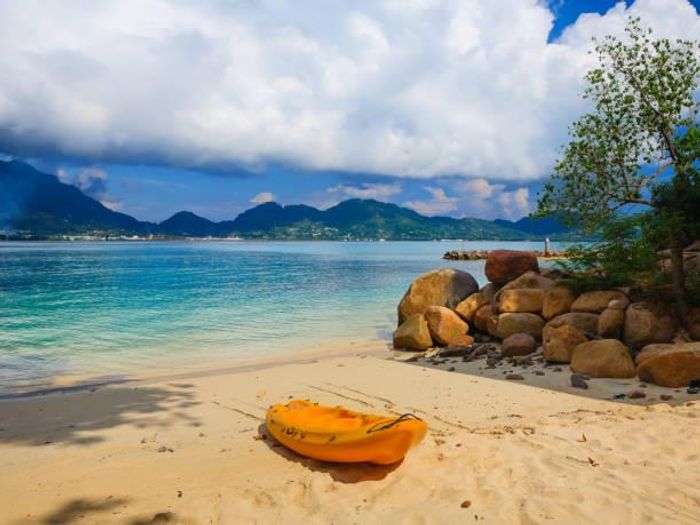 Island living on Mahe's southwest coast — a boutique resort in lush tropical gardens with terraces overlooking azure waters, 10 two‑bedroom suites, 20 bedrooms and 20 bathrooms, pool and restaurant.