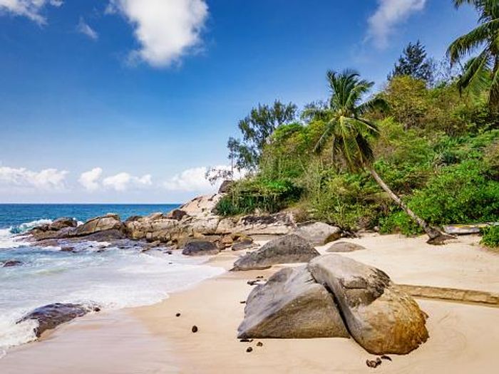 Embrace island living on Mahé’s northeast tip with elevated ocean and island views, contemporary design, modern amenities and spacious accommodations — four bedrooms, four bathrooms on expansive grounds.