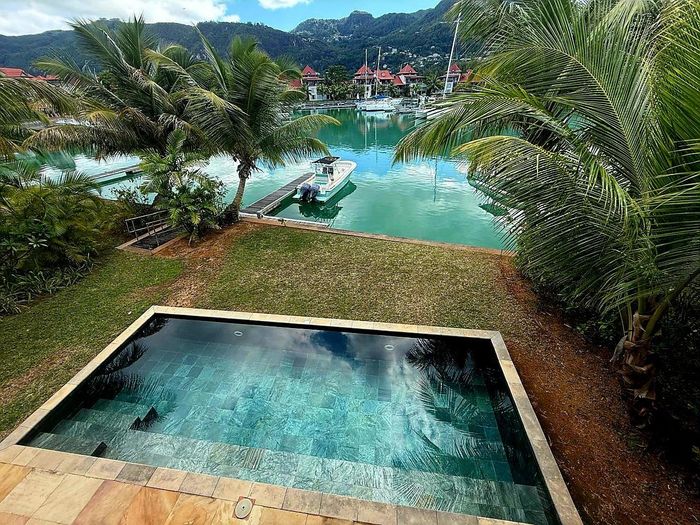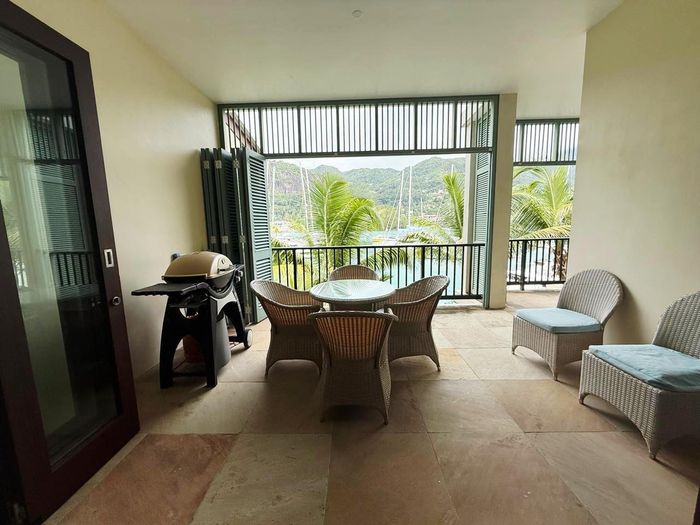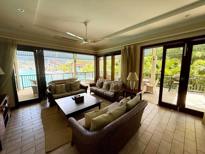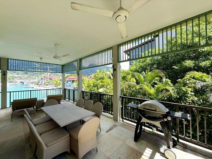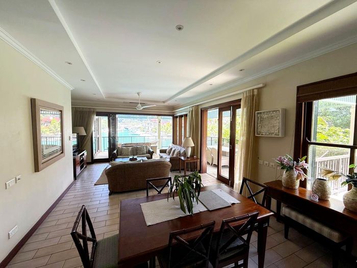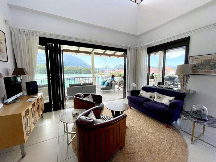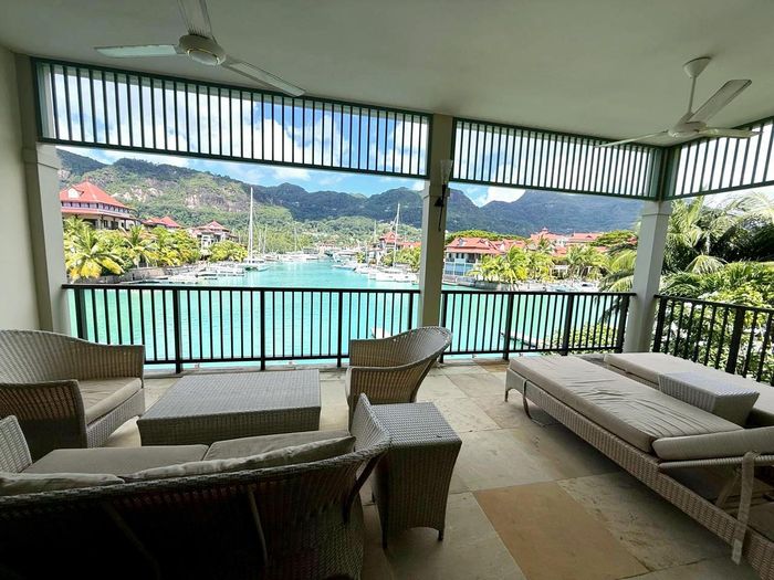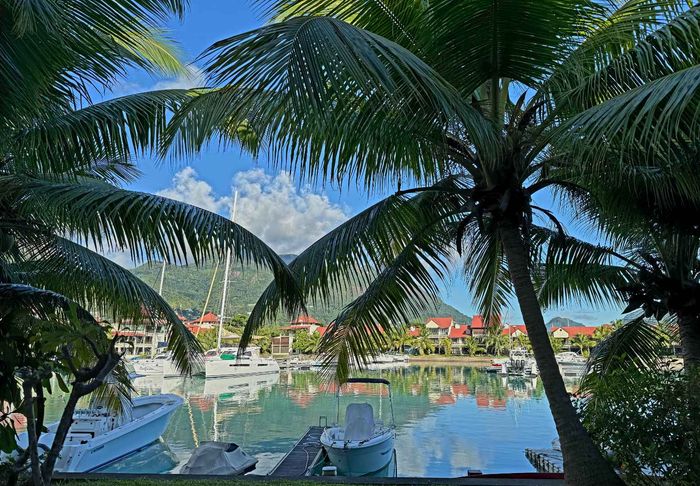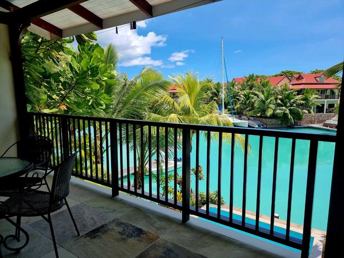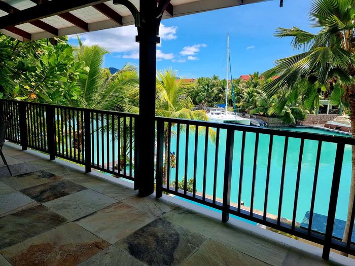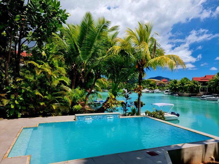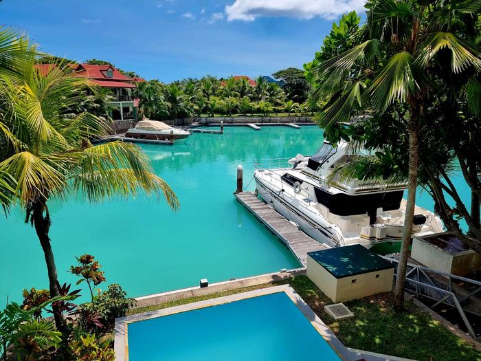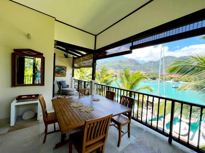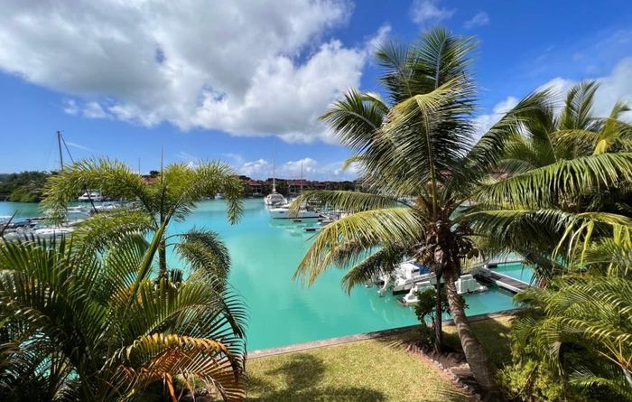 Live island life on Eden Island, steps from Mahé, with marina lifestyle, private mooring and clubhouse access; fully furnished first-floor apartment with one bedroom, two bathrooms.