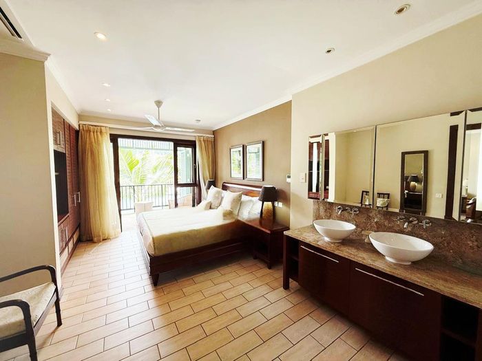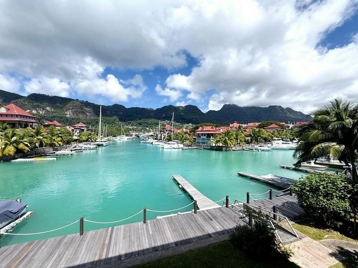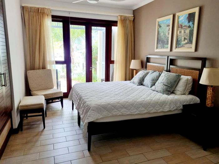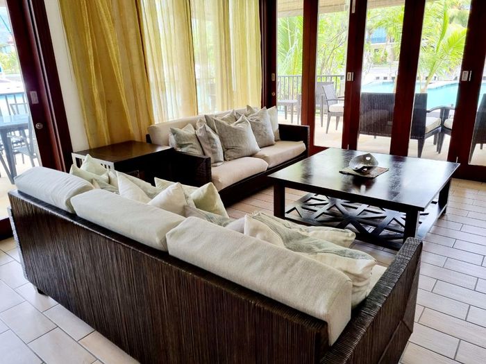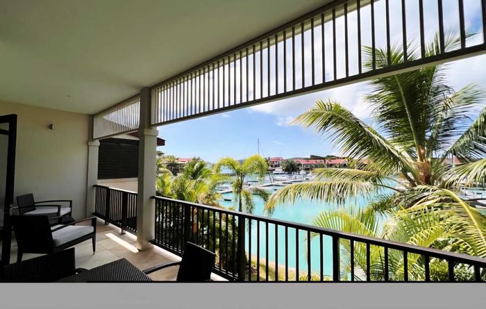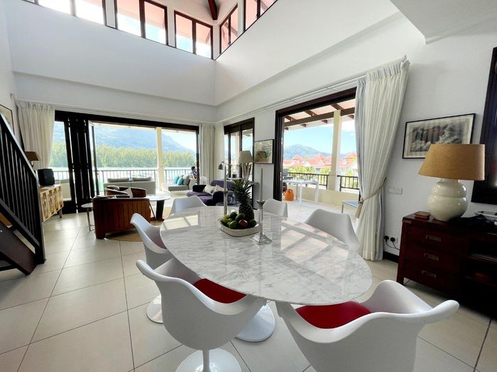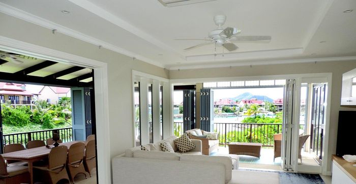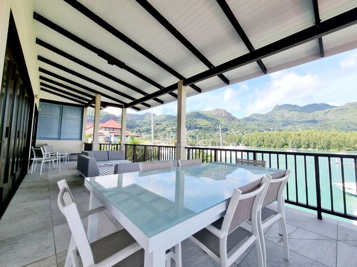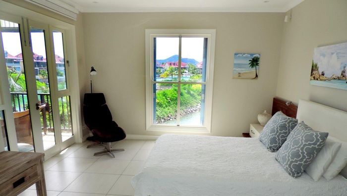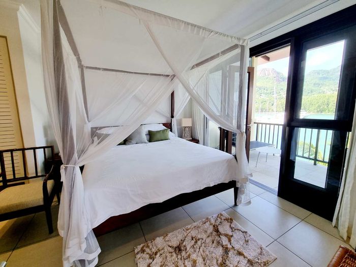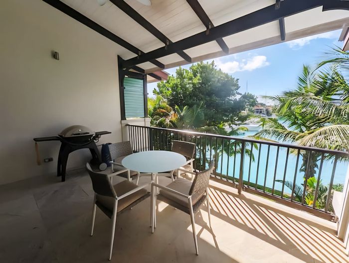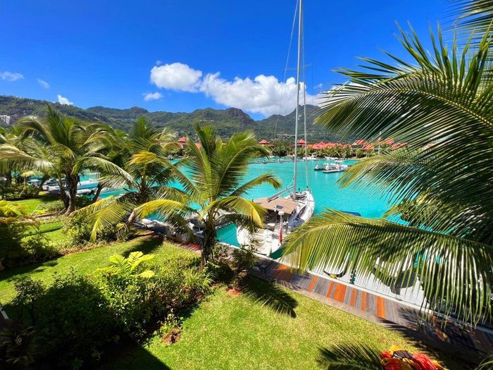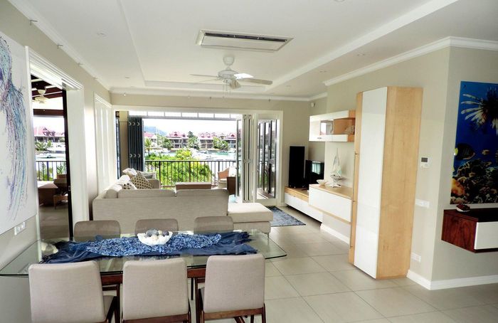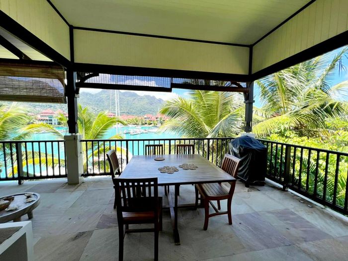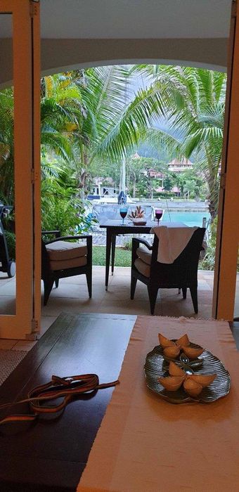 Live island life on Eden Island, steps from Mahé, with marina lifestyle, private mooring and clubhouse access; fully furnished first-floor apartment with one bedroom, two bathrooms.