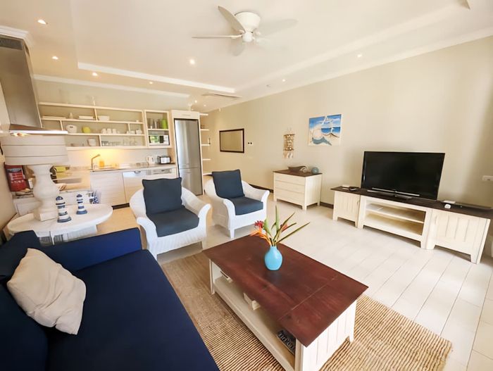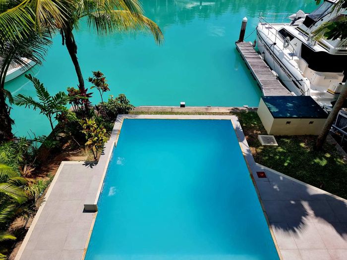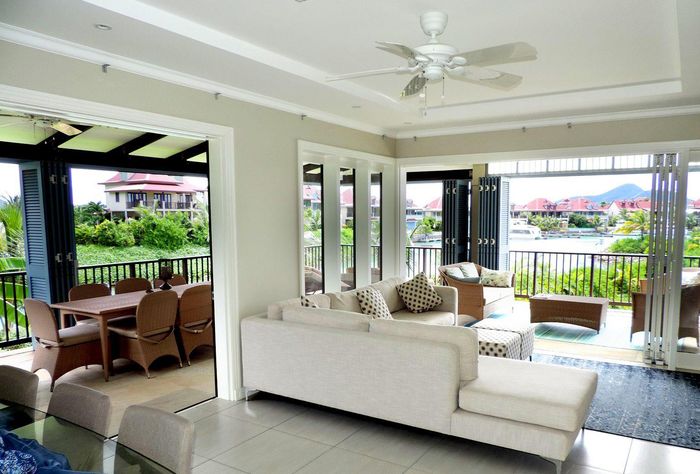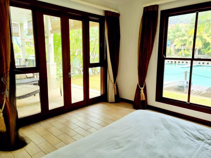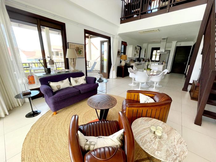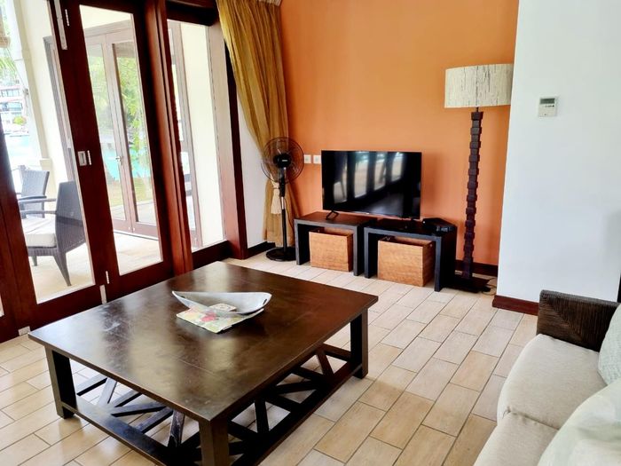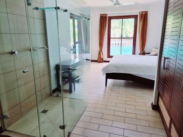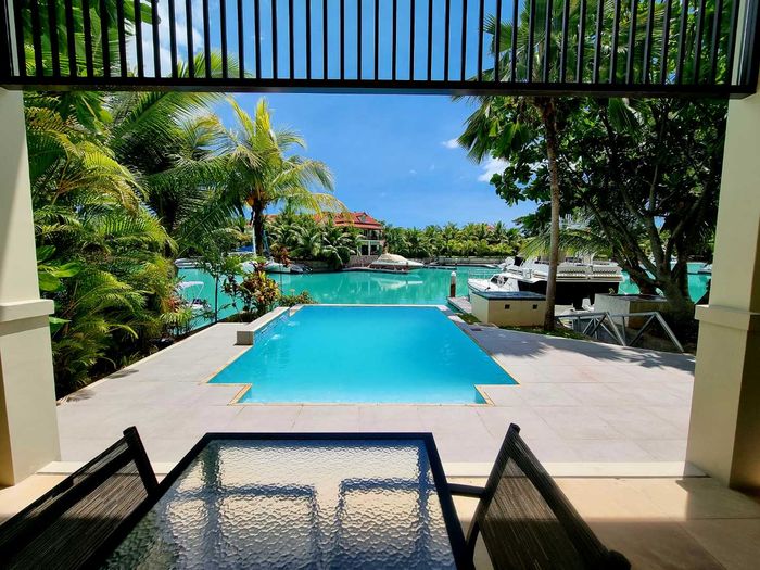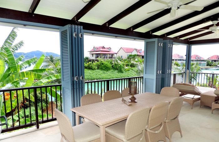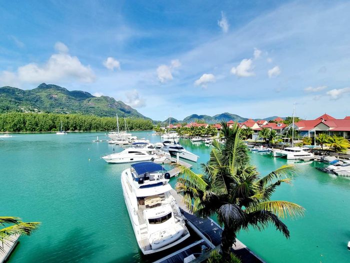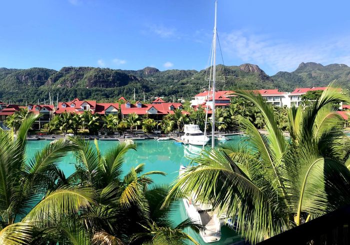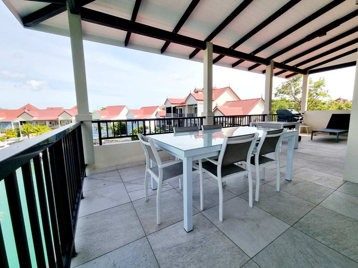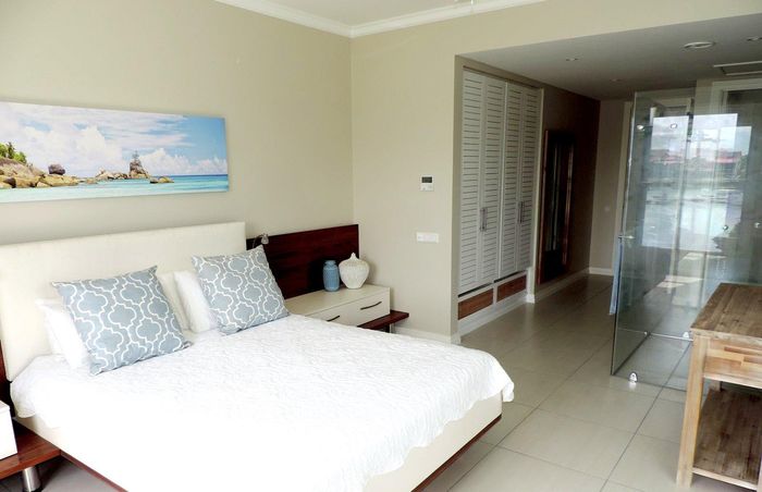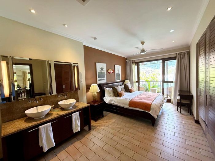 Live island life on Eden Island, steps from Mahé, with marina lifestyle, private mooring and clubhouse access; fully furnished first-floor apartment with one bedroom, two bathrooms.