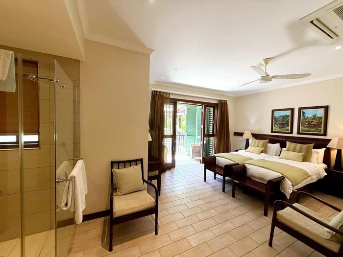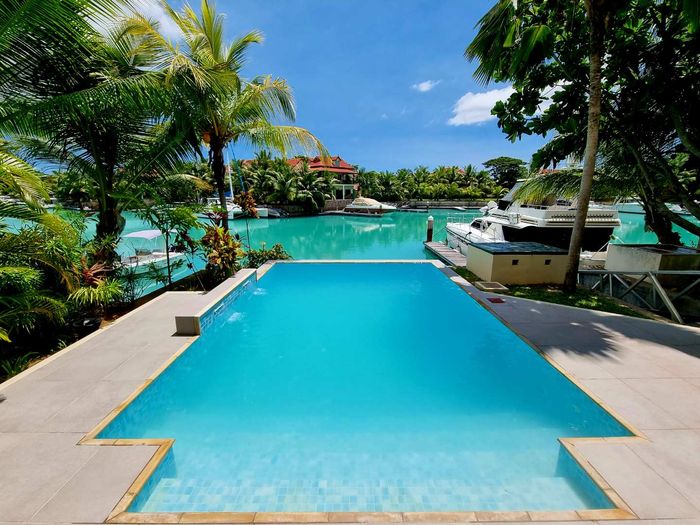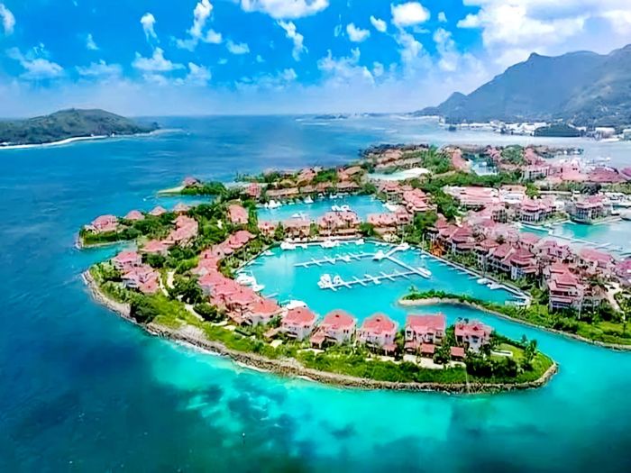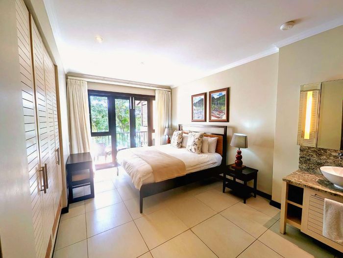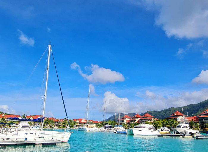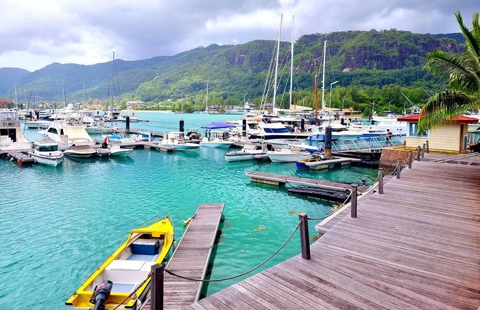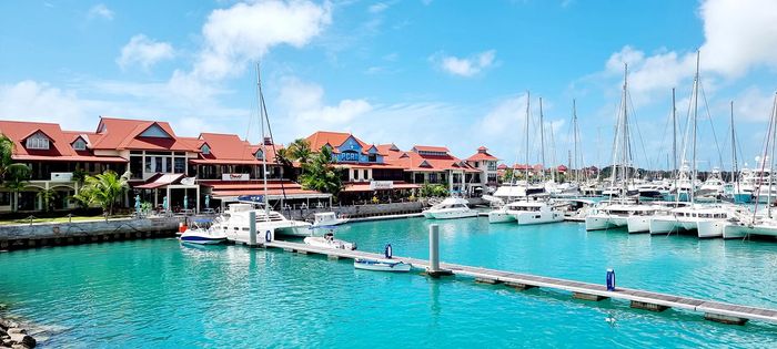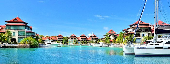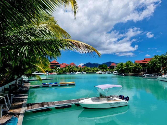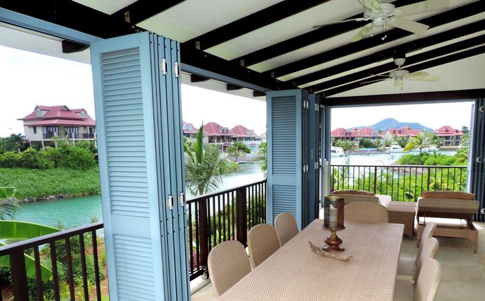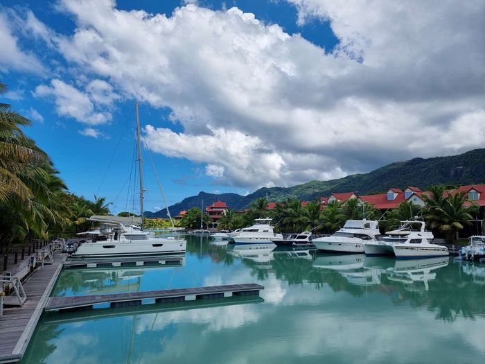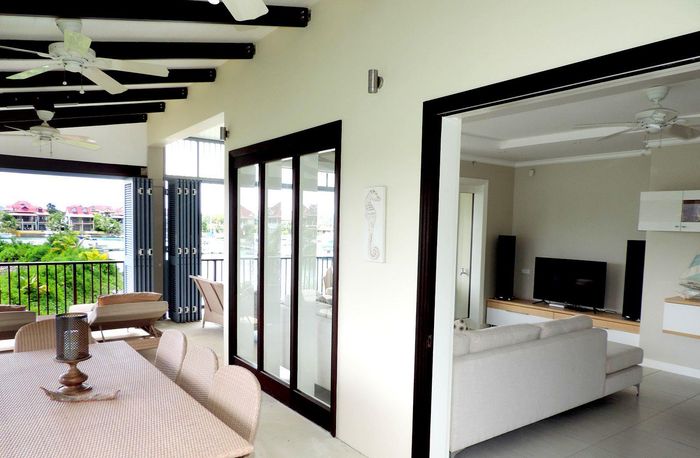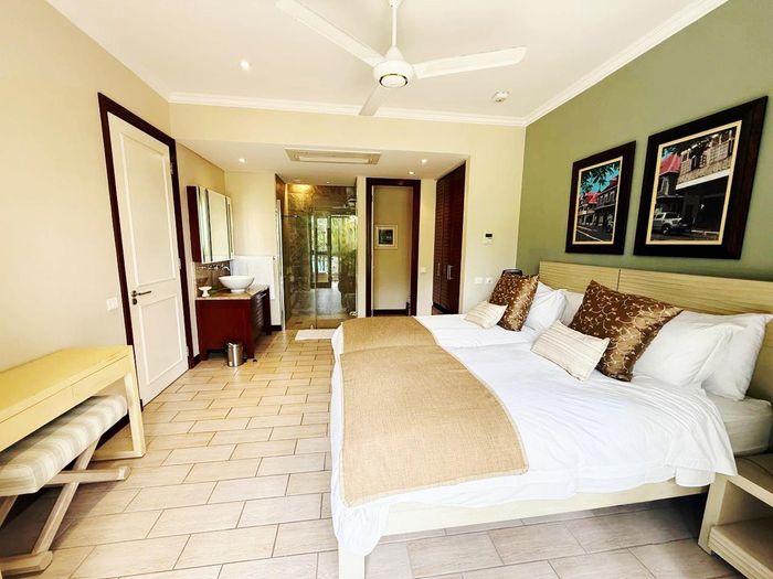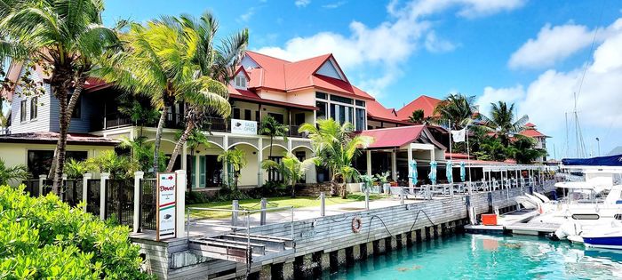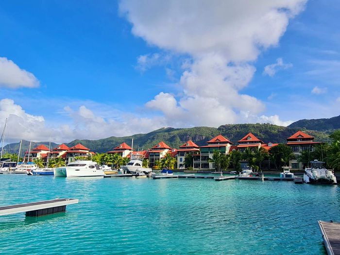 Live island life on Eden Island, steps from Mahé, with marina lifestyle, private mooring and clubhouse access; fully furnished first-floor apartment with one bedroom, two bathrooms.