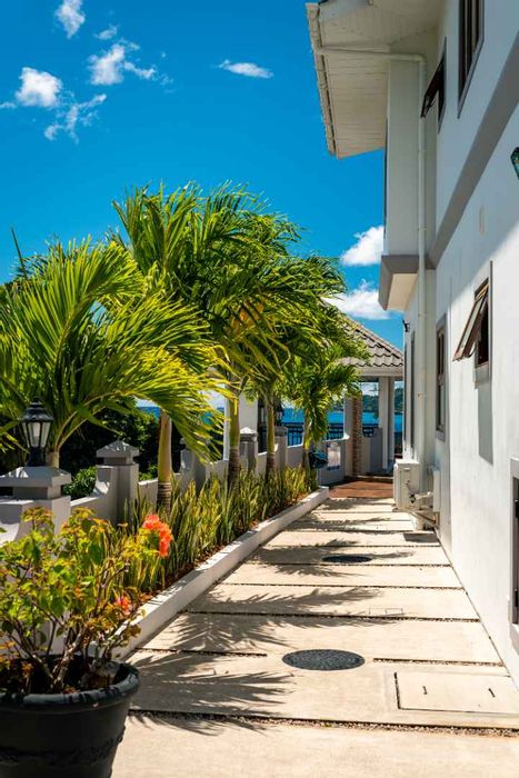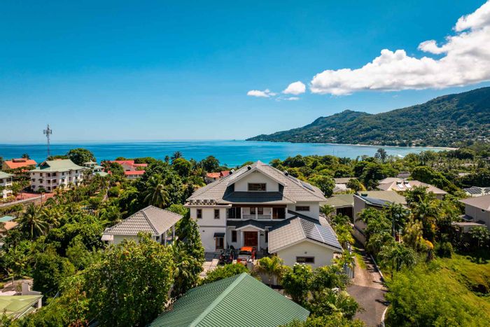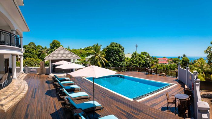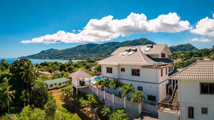 Large parcel of prime, elevated land in Mahe's North, with a grand villa on the property. Road access and all services in place. Unsurpassed North Island, Silhouette Island, beach, ocean and panoramic views.