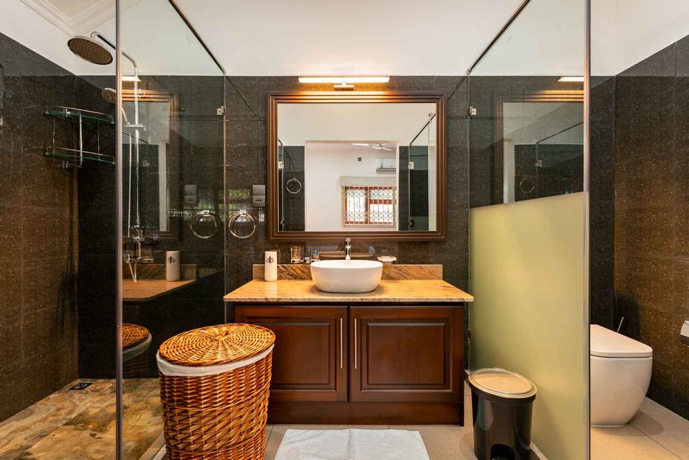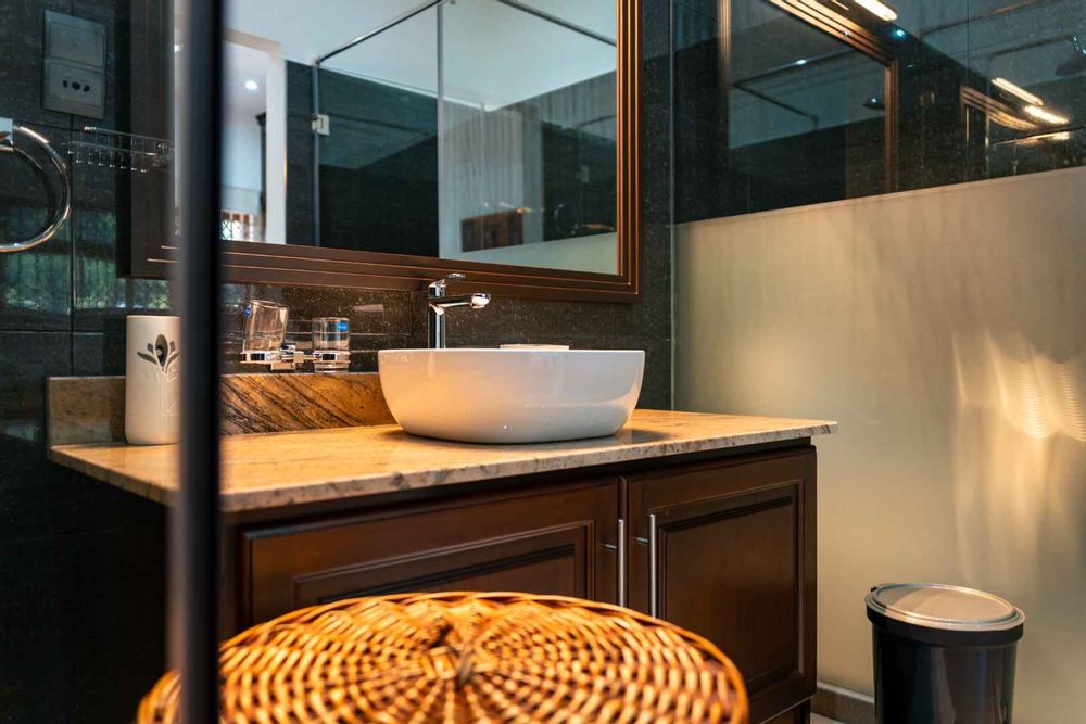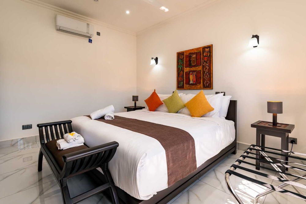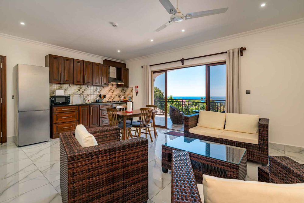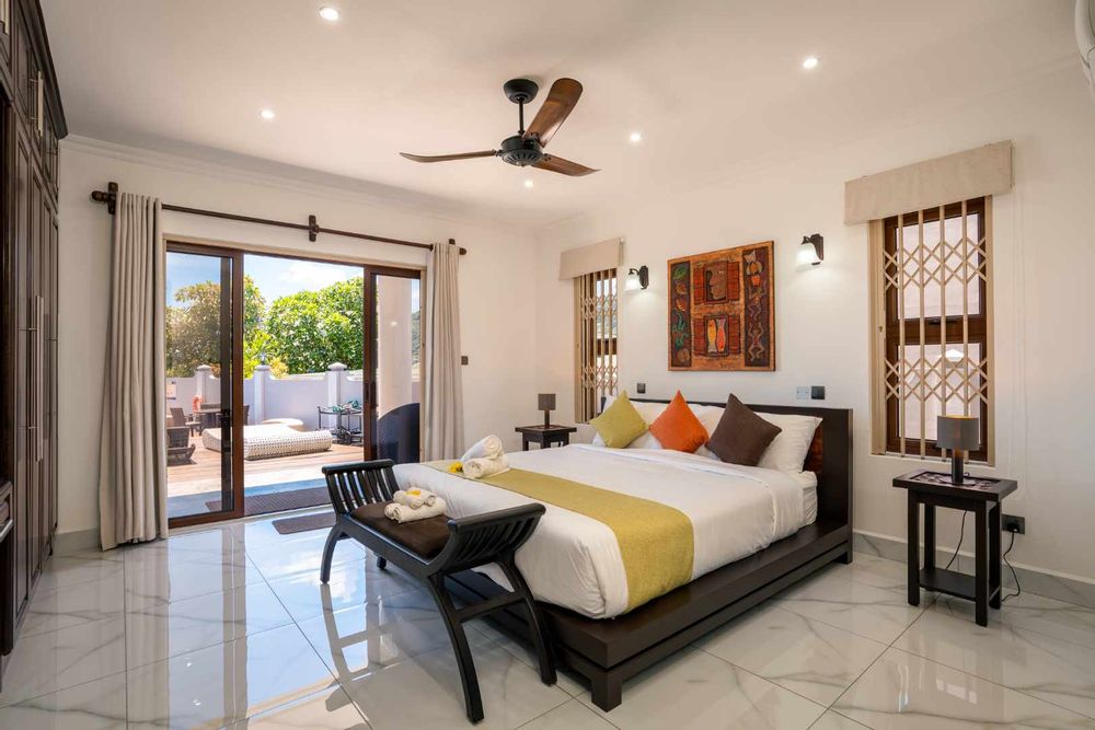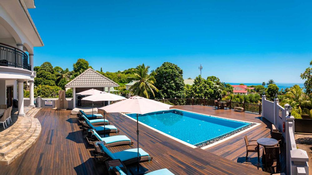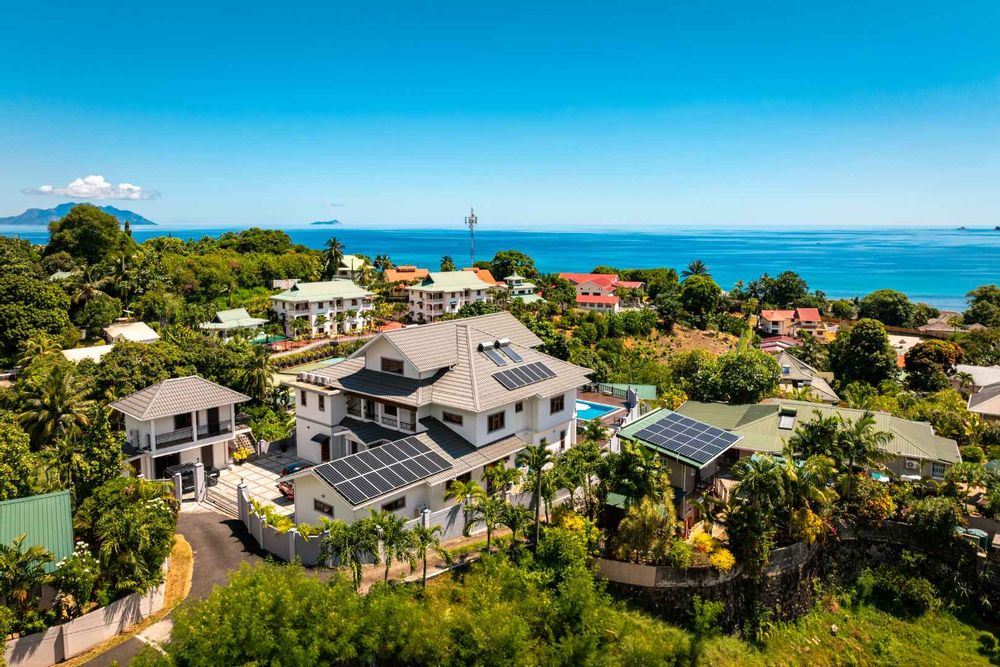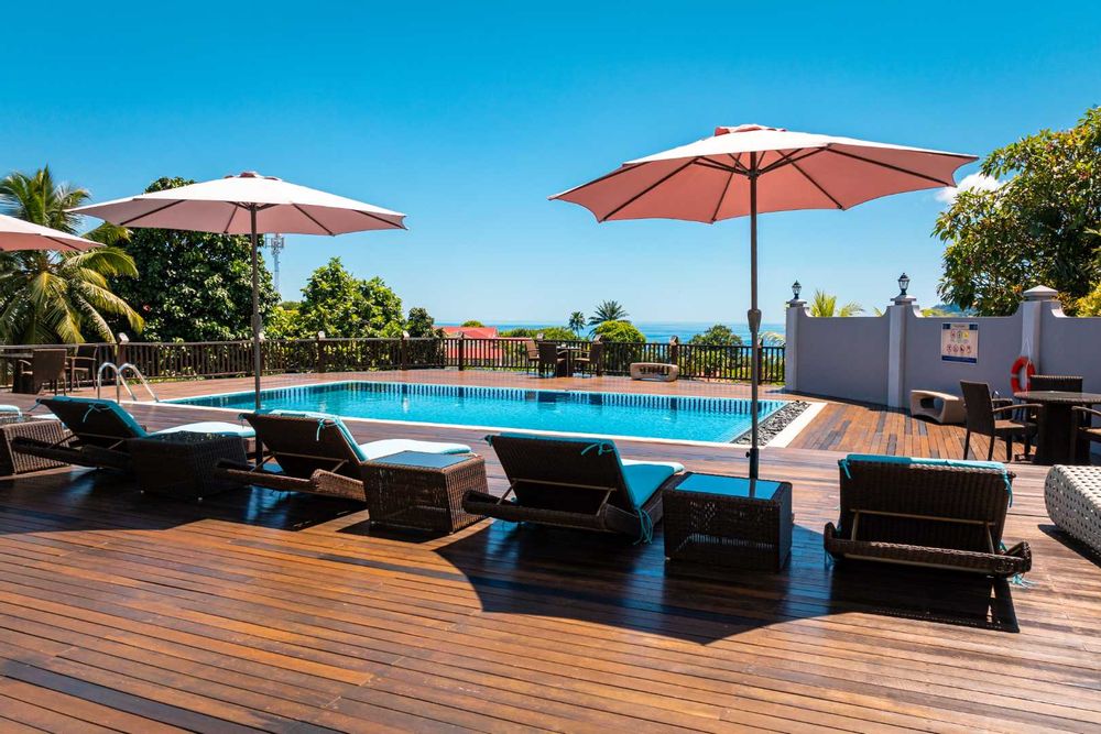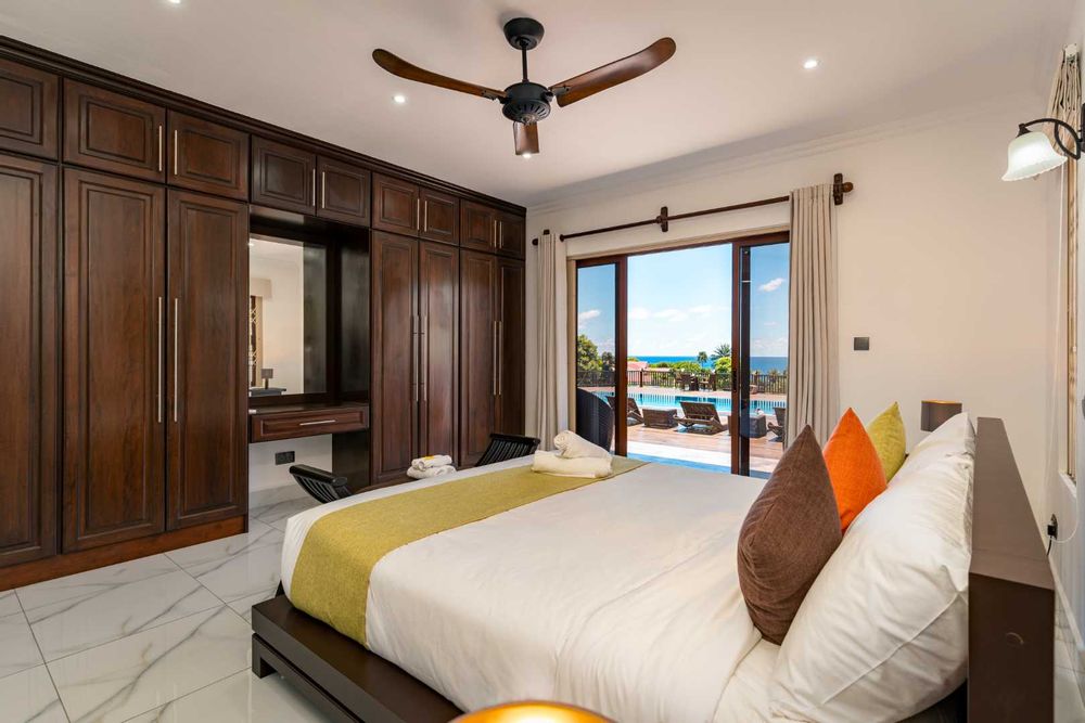 Exceptional villa located in sought Beau Bel Estate Bel Ombre, in North Mahe. Only 2 minutes from Beau Vallon Beach. Consisting of two dwellings. The double storey residence consists of 2 sumptuous en-suite bedrooms, kitchen, main living and dining room with guest WC and storeroom on the ground level, with a further 2 en-suite bedrooms, a second kitchen and dining area, WC and study on the upper level. Large outside patio complete with swimming pool, bar and changing area. The basement consists of another guest WC, shower, laundry and storeroom with water storage capacity of 36 000 litres and diesel generator. The second dwelling includes a fully self contained one bedroom suite on the ground floor and deluxe studio with separate entrance on the upper level. Truly a remarkable residence.