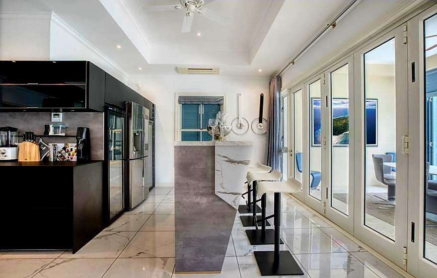 Exquisite ocean front villa. Finished to the highest standards with top end finishes throughout. Offering 5 all-ensuite bedrooms, lavish living and entertainment spaces, both indoor and out, contemporary kitchen adjacent to the main dining area, plus second kitchen complete with pantry, laundry and storage. Additional features include a stylised cinema room, private infinity pool set in a lush tropical garden and direct access mooring directly in front of the villa. Truly a remarkable property.