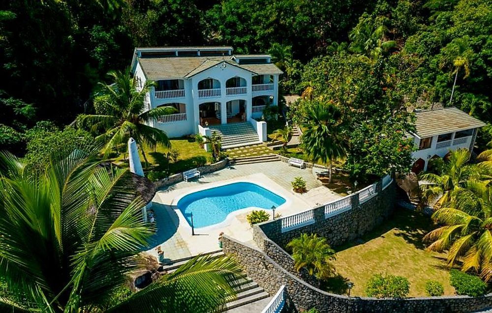 Grand property in highly sought after Machabee, North Mahe. Well maintained, older villa, set on 2 levels in lush, unspoilt tropical grounds, totalling nearly a full hectare. A rare find in the part of the island. Offering 4 bedrooms (2 en-suite) and 3 bathrooms in total, spacious living areas and incredible, unobstructed sea views. Separate guest/staff accommodation, large swimming pool and outdoor entertainment area.