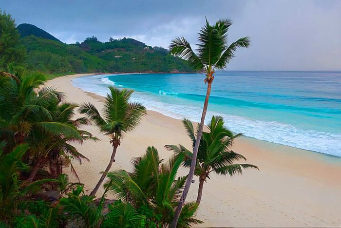 Beachfront development land in Mahe, 27,100 m² with 76m private beach access, foreign ownership permitted.