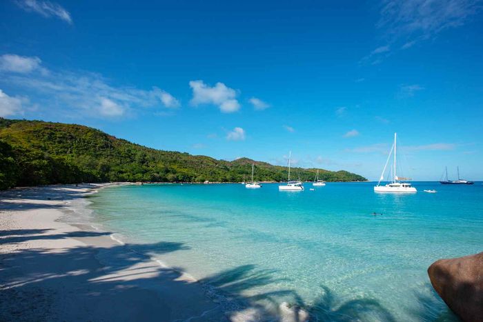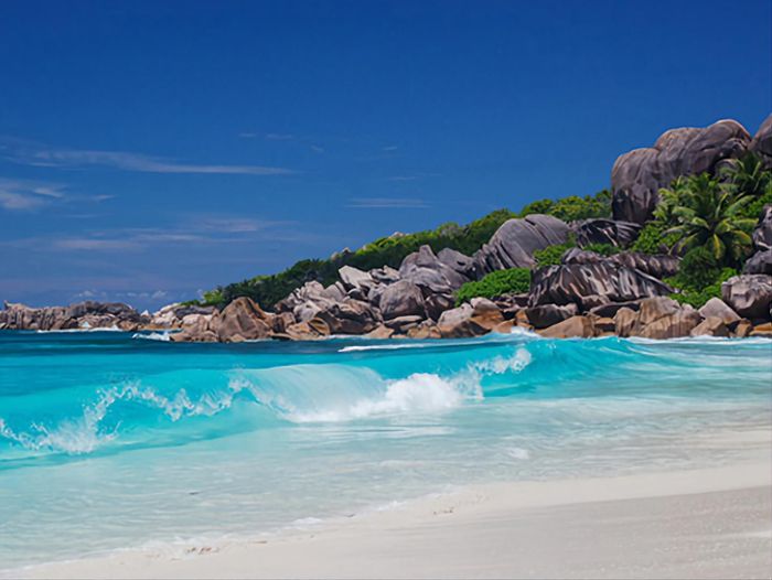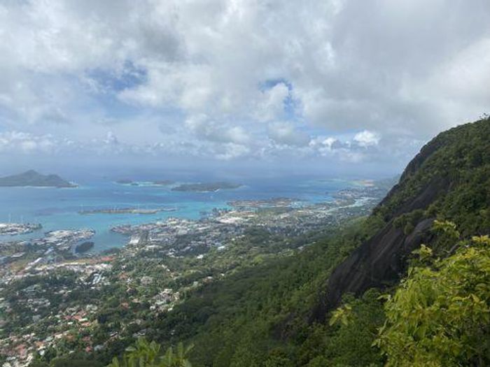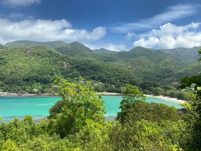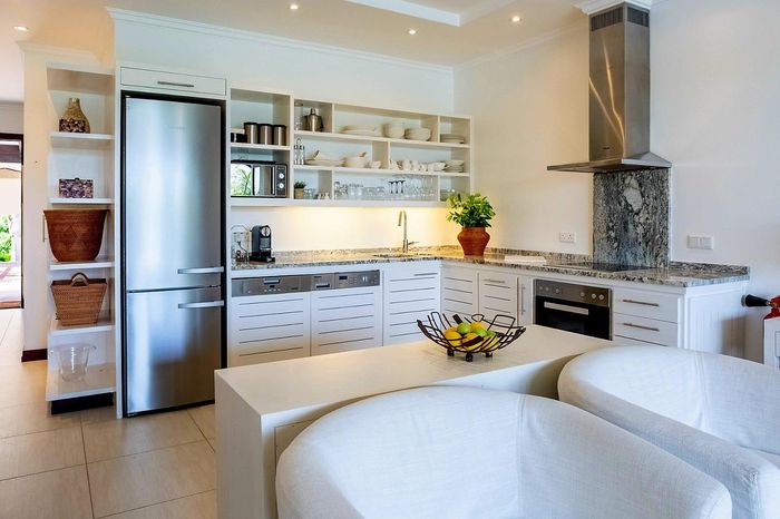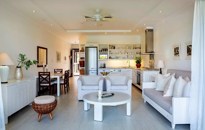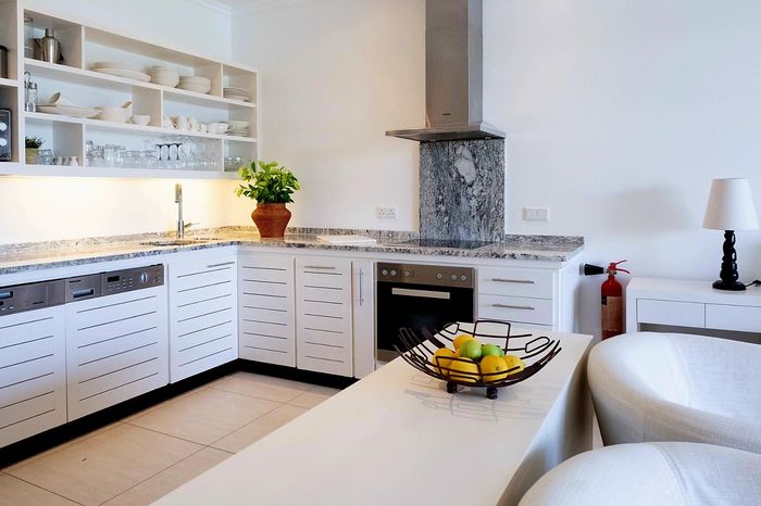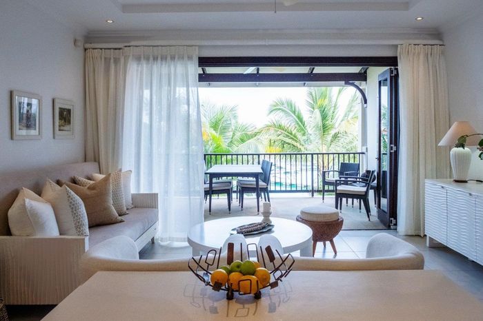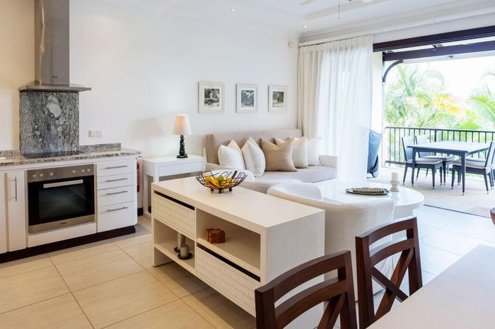 Enjoy island living on Eden Island, Seychelles, with marina and Port Royale views, a generous verandah and exclusive garden that reaches the oceanfront — one-bedroom en-suite, pool nearby.