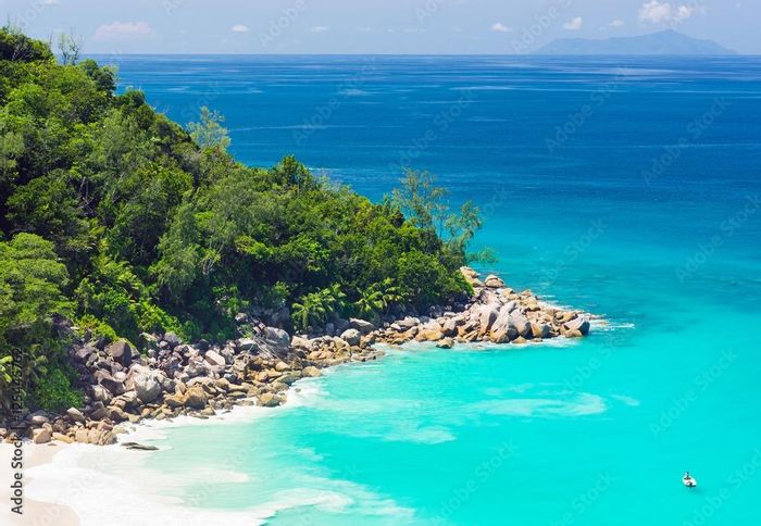7000 m² beachfront land on Praslin Island, Seychelles; foreign ownership permitted, services already provisioned.