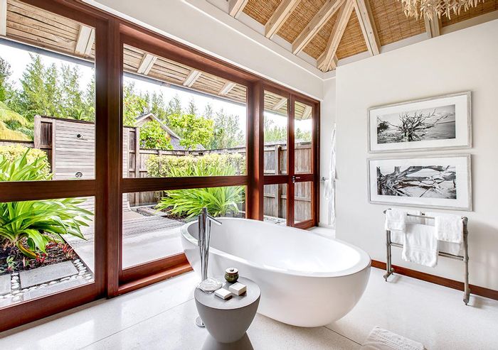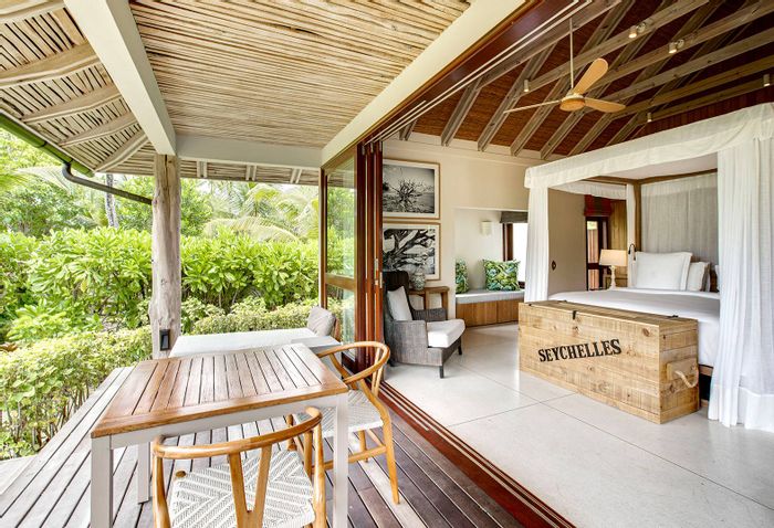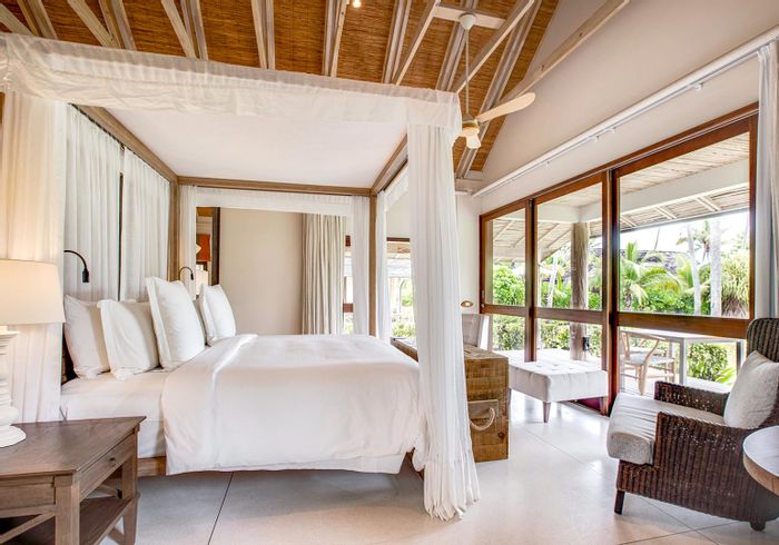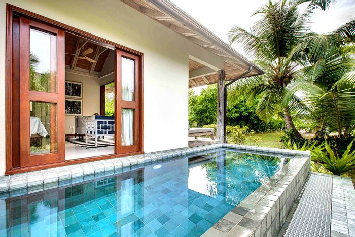 Private Beach Villa 123 on Desroches Island features 4 bedrooms, 4.5 bathrooms, and spans over 400m2 on a 2500m2 lot.